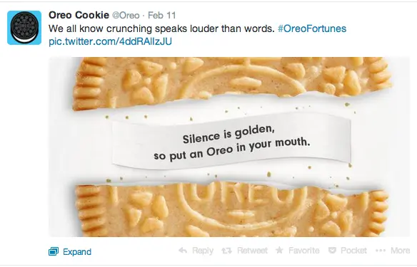 Alors, la prochaine fois que vous mangerez un Oreo, rappelez-vous à quel point leur stratégie Twitter est géniale. Cela rendra votre biscuit encore meilleur. Eh bien, cela a fonctionné pour moi :)