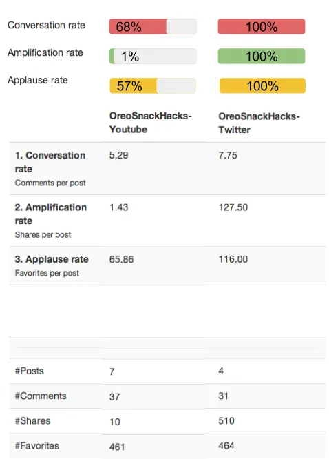 Et si vous compariez la même campagne sur différents réseaux sociaux ? Oreo Snack Hacks est un candidat parfait car il contient des vidéos et peut être analysé à la fois sur Twitter et YouTube.